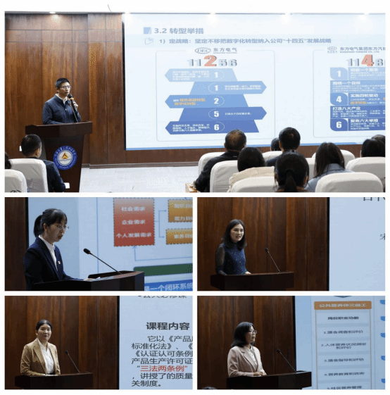 此次活动设置政策领学、劳模工匠进校园、示范说课、成果分享、集体备课、专家点评等多个环节,内容丰富、务实高效。中国计量大学经济与管理学院副院长、全国市场监管职业教育教学指导委员会质量管理与认证专委会秘书长余晓教授以“学习强国纲要,上好一堂有质量的课”为主题开展政策领学,系统梳理规划纲要中与职业教育、质量领域相关的核心内容,深入解读职业教育课程思政建设对课堂质量及教师素养的具体要求,指明了专业与思政融合的实施路径;东方电气集团数字科技有限公司徐健副总经理带来“数字化赋能企业质量管理的实践探索”专题报告,分享了企业在数字化转型、技术创新、管理突破等方面的实践和成效,对人工智能赋能质效提升进行了展望,传递了“精益求精、追求卓越”的工匠精神与“技能报国、质量兴企”的责任担当。河南农业职业学院王彦平教授团队通过说课视频展示了国家级课程思政示范课程《营养配餐设计与实践》的思政元素挖掘、教学设计与实施成效。中国计量大学标准化教育研究中心副主任、全国市场监管职业教育教学指导委员会标准化专业委员会秘书长顾兴全教授分享了“十四五”职业教育国家规划教材建设成果,详细介绍了教材编写中思政元素融入的方法与技巧。