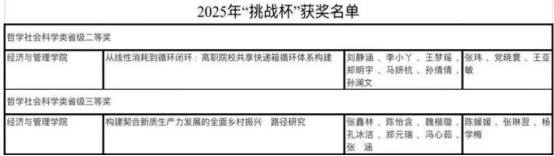 近日,由共青团河南省委、省教育厅、省社科院、省科协、省学联联合主办的河南省第十七届“挑战杯”大学生课外学术科技作品竞赛获奖结果揭晓。我院参赛团队表现优异,由张玮、陈媛媛等老师指导的两组参赛学生共荣获省级二等奖和三等奖各1项。