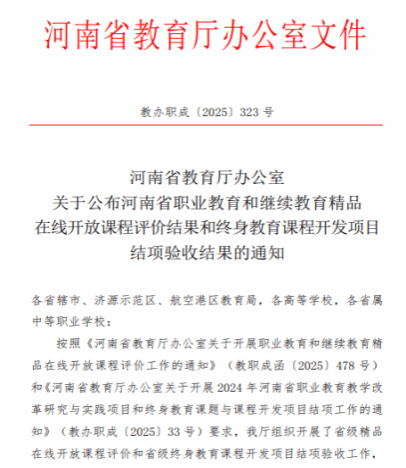 我院1门课程顺利通过河南省职业教育和继续教育精品在线开放课程评价