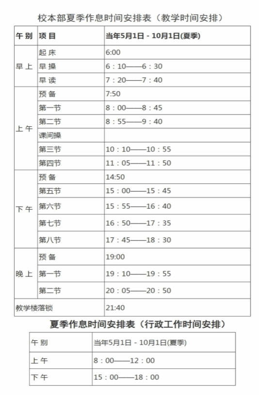 3、5月6日起执行夏季作息时间。(舞钢校区和示范区校区教学作息时间不变)请注意时间变化。