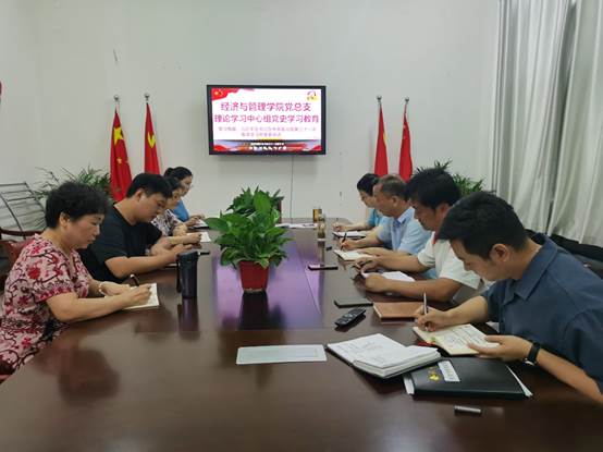 7月13日,经管学院党总支理论学习中心组在实训楼4楼会议室召开集中学习会,专题学习贯彻习近平总书记在中共中央政治局第三十一次集体学习时的重要讲话精神。学院理论学习中心组成员参加学习。