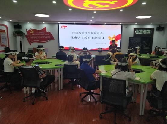 6月3日上午,经管学院依托我院思政教育虚拟仿真教学中心教学项目,组织全体教工党员在虚拟仿真实验场景中开展党史学习教育,体验了复兴之路—中国航天、长征—爬雪山和过草地等VR场景, VR党建的交互式、全景式、沉浸式教学环境,让全体党员更直观真切的了解党史,体验了党的伟大历程。