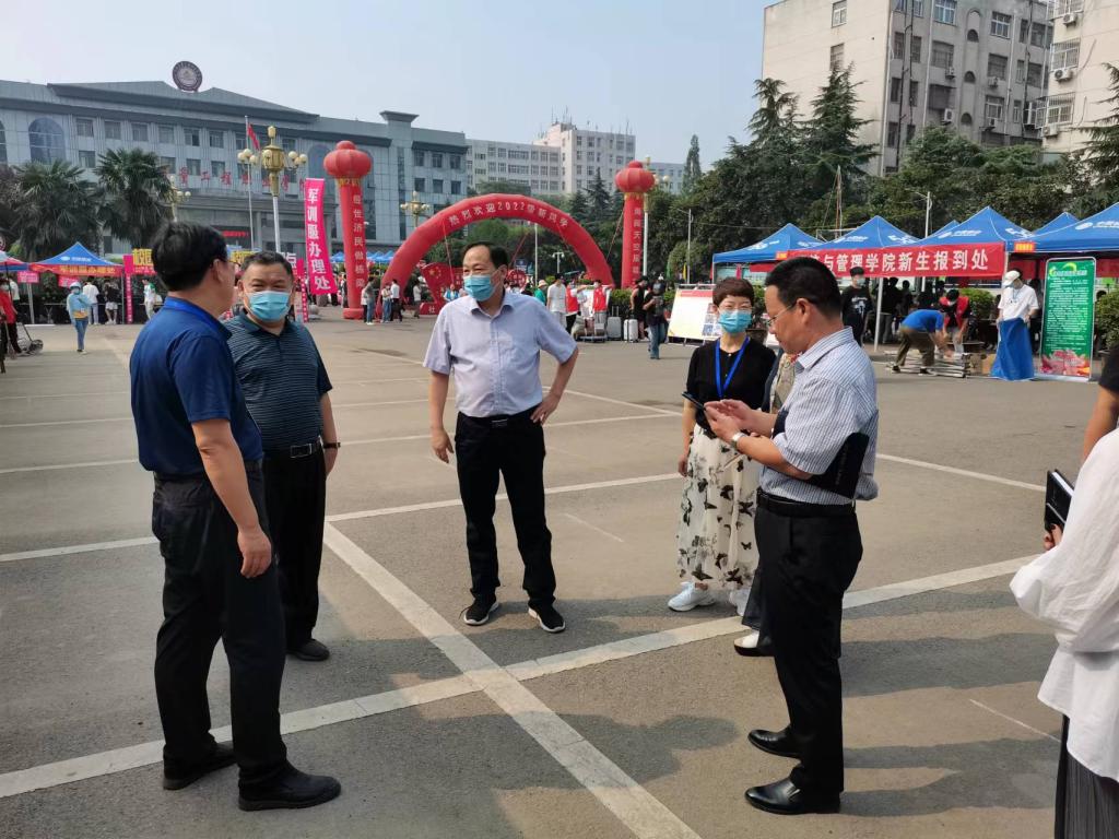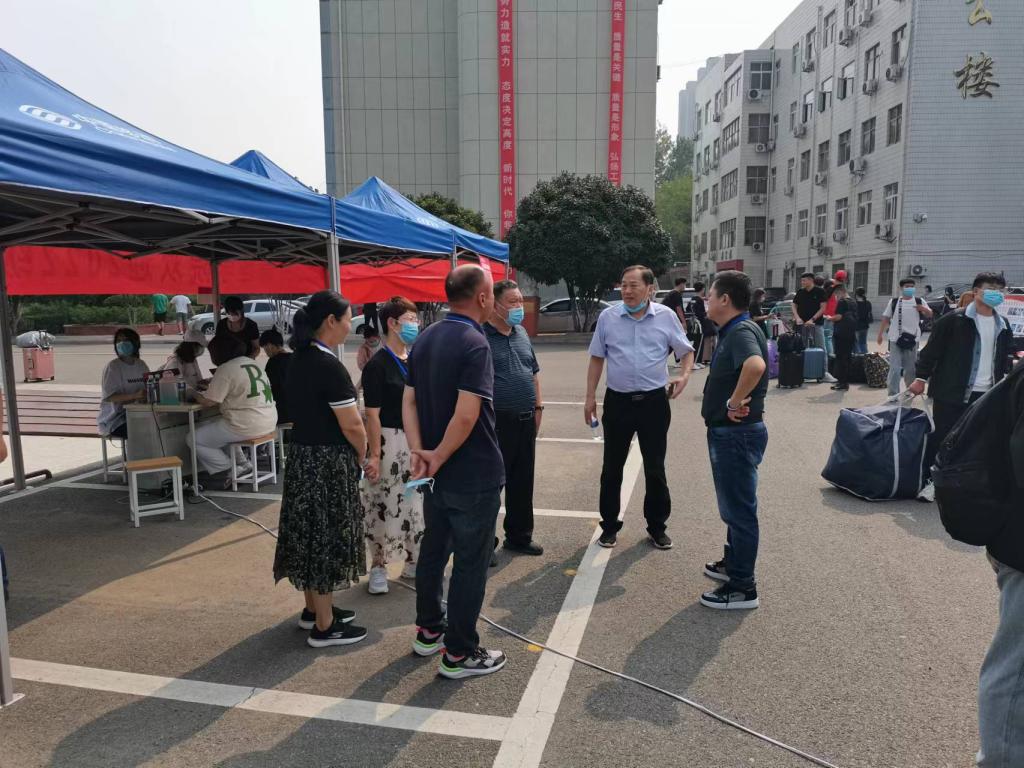 9月13日,学院党委委员、纪委书记秦中文率队,深入迎新现场督导检查疫情防控工作。学院纪委副书记王仲方、孙琦等陪。