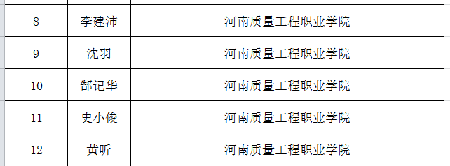 其中,席会平教师入选2021年河南省职业院校省级名师培育对象;李建沛、沈羽、郜记华、史小俊、黄昕五位教师入选2021年河南省职业院校省级骨干教师培育对象。