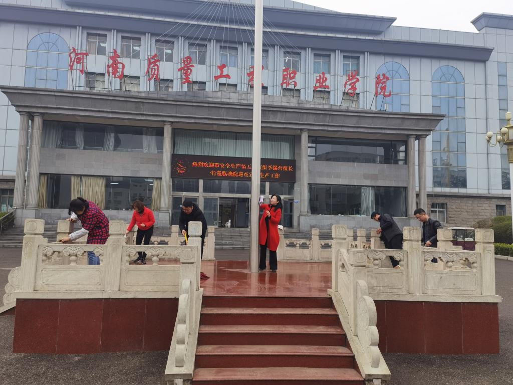五星红旗代表我们伟大祖国神圣不可侵犯的尊严,国旗台作为学院升国旗仪式的重要组成部分,维护国旗台的庄严就是维护国旗的尊严。教务处支部党员时刻秉承“心系国旗、乐于奉献、率先垂范”的精神,用实际行动诠释了对国旗的尊敬和爱护,为迎接学生返校贡献自己的力量。