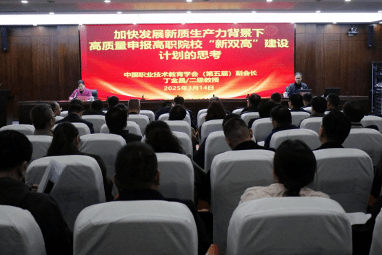 丁金昌教授以《加快发展新质生产力背景下高质量申报高职院校“新双高”建设计划的思考》为题,从政策解读、内涵剖析、实施路径三方面作专题培训。一是把握高职教育发展的新需求与新政策。什么是“新双高”,即适应新时代新特征新需求,符合新政策新要求。怎么做,要适应“技能转型新需求”建“新双高”;要提供“多样性、个性化的教育”建“新双高”;要打造“类型特色、贯通培养”建“新双高”。二是梳理“新双高”建设的内涵逻辑与问题。在高水平目标引领下,主动作为学习经验,找准自身定位,强化内涵建设,办出类型教育优势,实现高质量发展。三是实施高职“新双高”建设的思路与路径。树立现代高职教育新发展办学理念 (先导),积极推进“三结合”的 教学改革 (动力),切实创建办学体制机制的综合制度 (保障)。