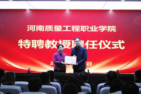 会议伊始,学院举行特聘教授聘任仪式,正式聘请中国职业技术教育学会(第五届)副会长丁金昌教授为学院“特聘教授”,为“新双高”建设提供智力支持。