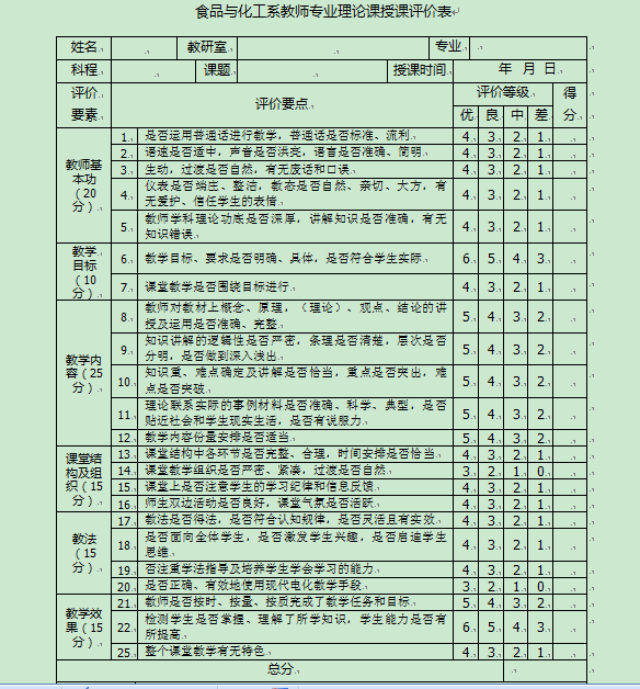 要求:每位专任教师讲授一节能够体现个人教学特色和高水平的理论课。[考核组参加听课并进行评定]