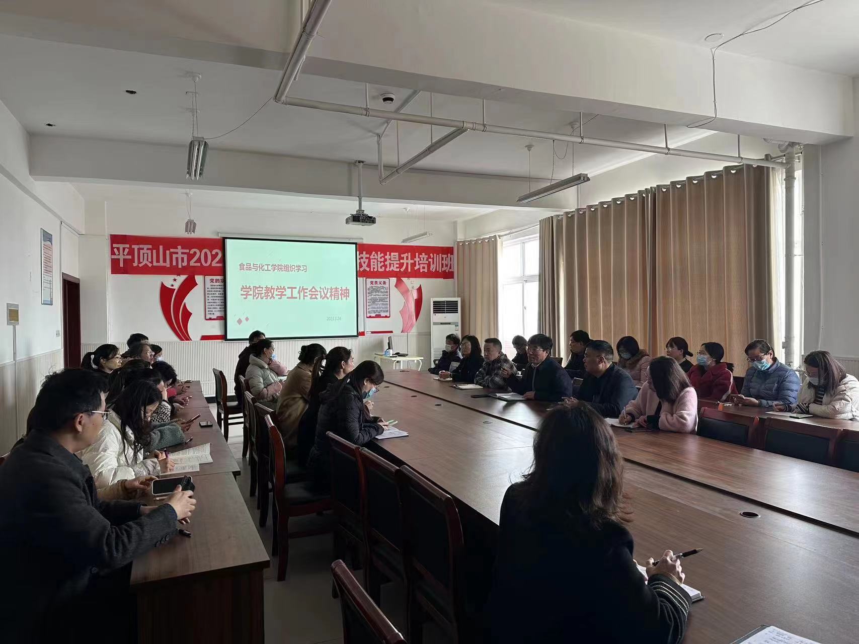为进一步落实学院教学工作会议精神,2023年3月24日-3月28日期间,食品与化工学院在食检大楼9510组织两次学习学院教学工作会议视频,除了有课的老师,其他教师全部参加了会议。