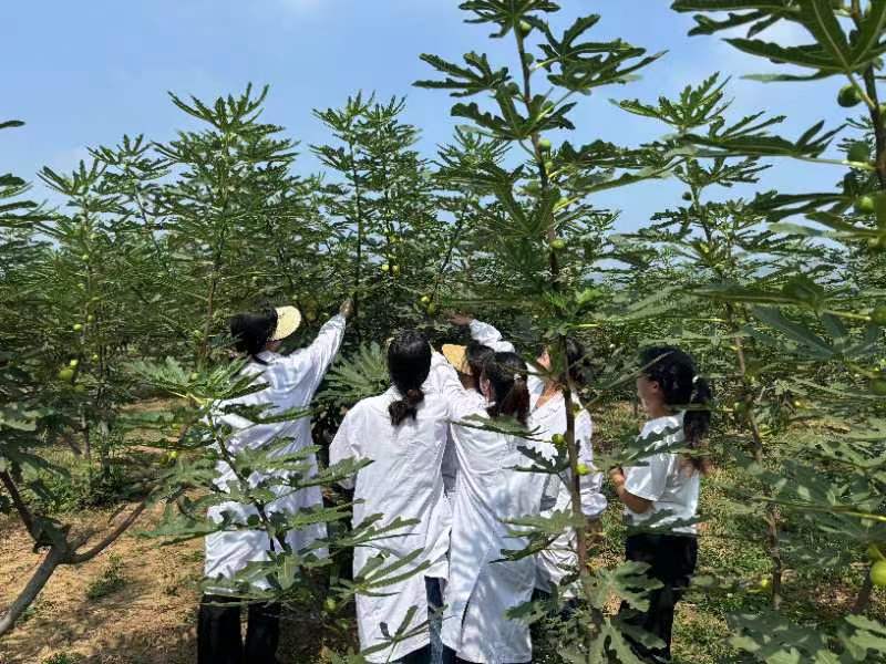 在公司领导与学院老师的精心安排下,一群充满热情的学生前往位于河南省平顶山市内的无花果种植基地,实地探访了无花果酒的生产源头。这片郁郁葱葱的果园,不仅孕育了天然优质的无花果原料,更为学生们提供了一个近距离接触大自然,深入了解果酒酿造工艺的绝佳平台。