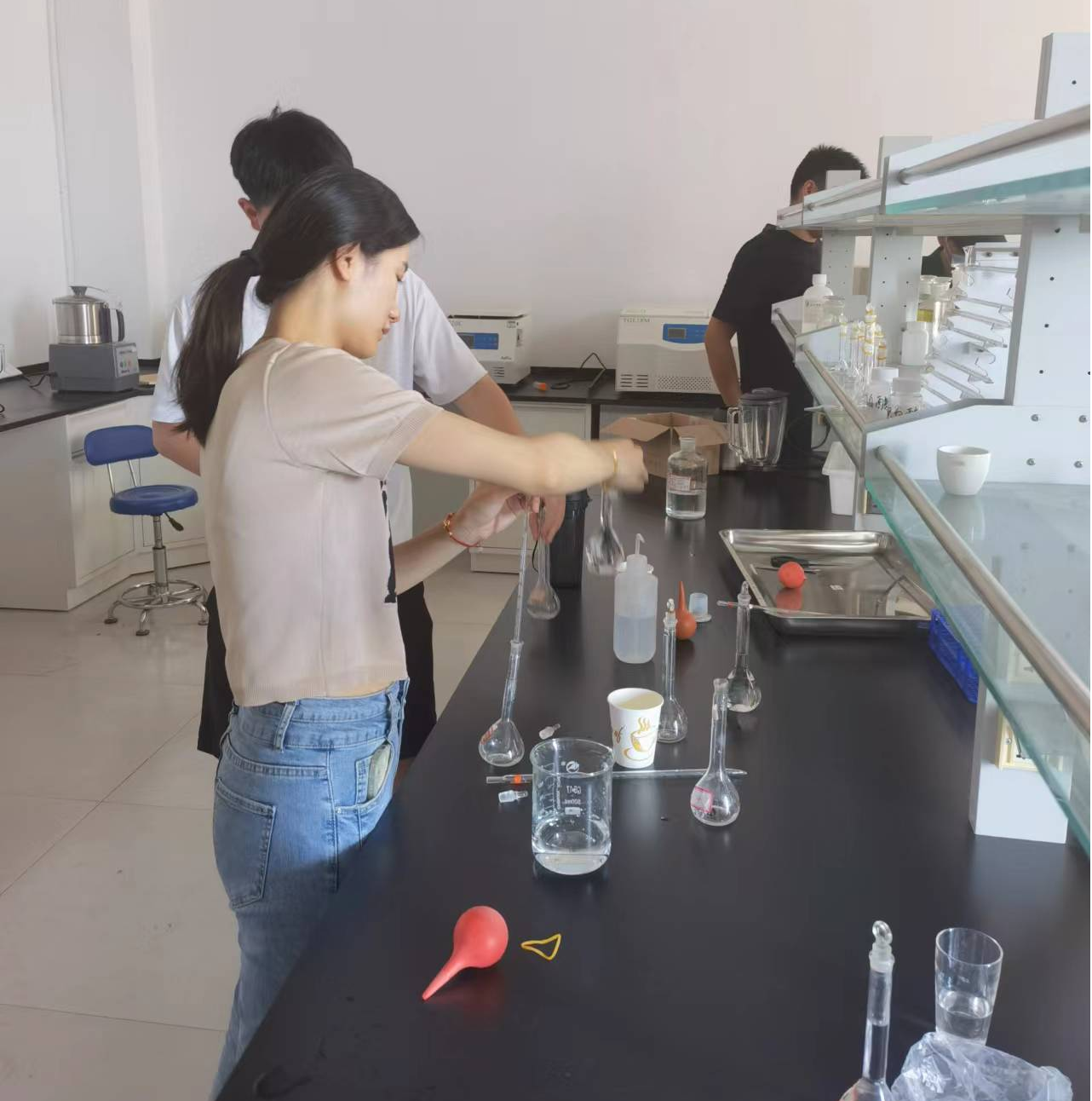活动中,学员们参观了清洗破碎区、发酵区、储酒区、调配区、罐装区、冷库六大区域,讲解员讲解了工艺流程:前处理工段、发酵工段、后处理工段,经过原料筛选、清洗、破碎、原料输送、调配、酵母菌的活化、主发酵、皮渣分离、后发酵等生产工艺,并组织人员进行了实地操作演练,让大家在潜移默化中掌握果酒生产知识和技能。组织人员进行果酒的检验与检测方法,并让学生亲自操做体验。