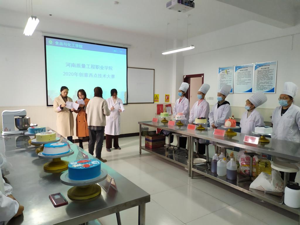 2020年11月16日上午九点,院级学生技能大赛“创意西点技术大赛”项目在食品与化工学院食品工艺实验室9703拉开帷幕,参赛选手由食品营养与检测、食品加工技术、农产品加工与质量检测、药品质量与安全、宝玉石鉴定与加工专业的9名选手参赛。比赛按照全国职业技术院校在校生创意西点技术大赛技能考核要求,通过设计制作一款创意蛋糕,一决“糕”低。