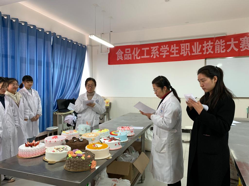 2019年12月3日下午一点,院级学生技能大赛“创意西点大赛”项目在食品与化工系食品工艺实验室拉开帷幕,参赛选手由2018级食品营养与检测、食品加工技术专业的13名选手参赛,通过制作一款8寸蛋糕,一决“糕”低。比赛在选手紧张而有序地忙碌中开始,从奶油的打发、蛋糕胚的抹面修饰到裱花装点,各组选手们忙得不亦乐乎。他们专注地眼神、娴熟的动作都为这场比赛增加了亮点。系主任席会平,书记胡洁涛,副书记李姗姗莅临大赛的现场进行指导,评委及食化系教师观看了整场比赛。他们认真地观察选手的操作,从创意、造型、色彩搭配、卫生等多方面客观评判了选手的作品,经过激烈的现场技艺比拼,最终13号选手张岚的《锦篮繁花》凭借精妙的设计和娴熟的技艺夺得冠军;4号选手樊彤彤与7号选手张梦瑶分别凭借作品《水果甜心》及《小熊乐园》共同夺得亚军。12号选手赵肖菡的《初见》、11号选手唐晨晓的《傲雪寒梅》及3号张存普的《如意》荣获三等奖。最后评委对选手作品和本次大赛做了点评和总结。