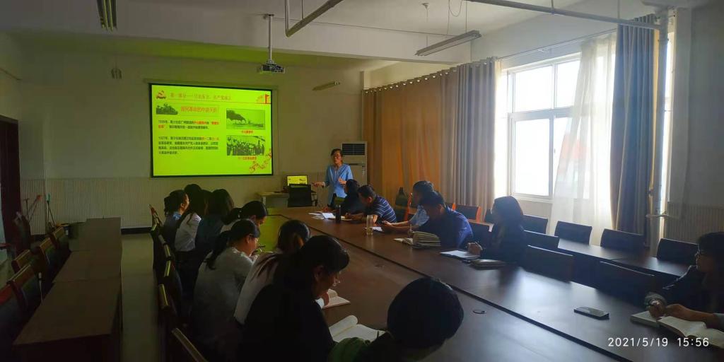 5月19日下午,食品与化工学院邀请院党史学习教育宣讲成员、思政部汪丽娜老师,在食品与化工学院会议室为全体党员讲了一堂精彩生动的党史学习教育专题讲座——《铭记沧桑历史,接力复兴使命——专题学习新民主主义革命时期的历史 》。