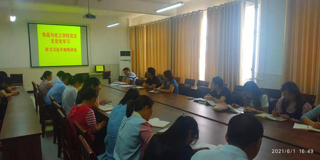 6月1日下午,食品与化工学院全体教师党员召开学习贯彻习近平总书记在南阳考察调研时重要讲话精神座谈会,院党总支书记胡洁涛同志主持会议。
