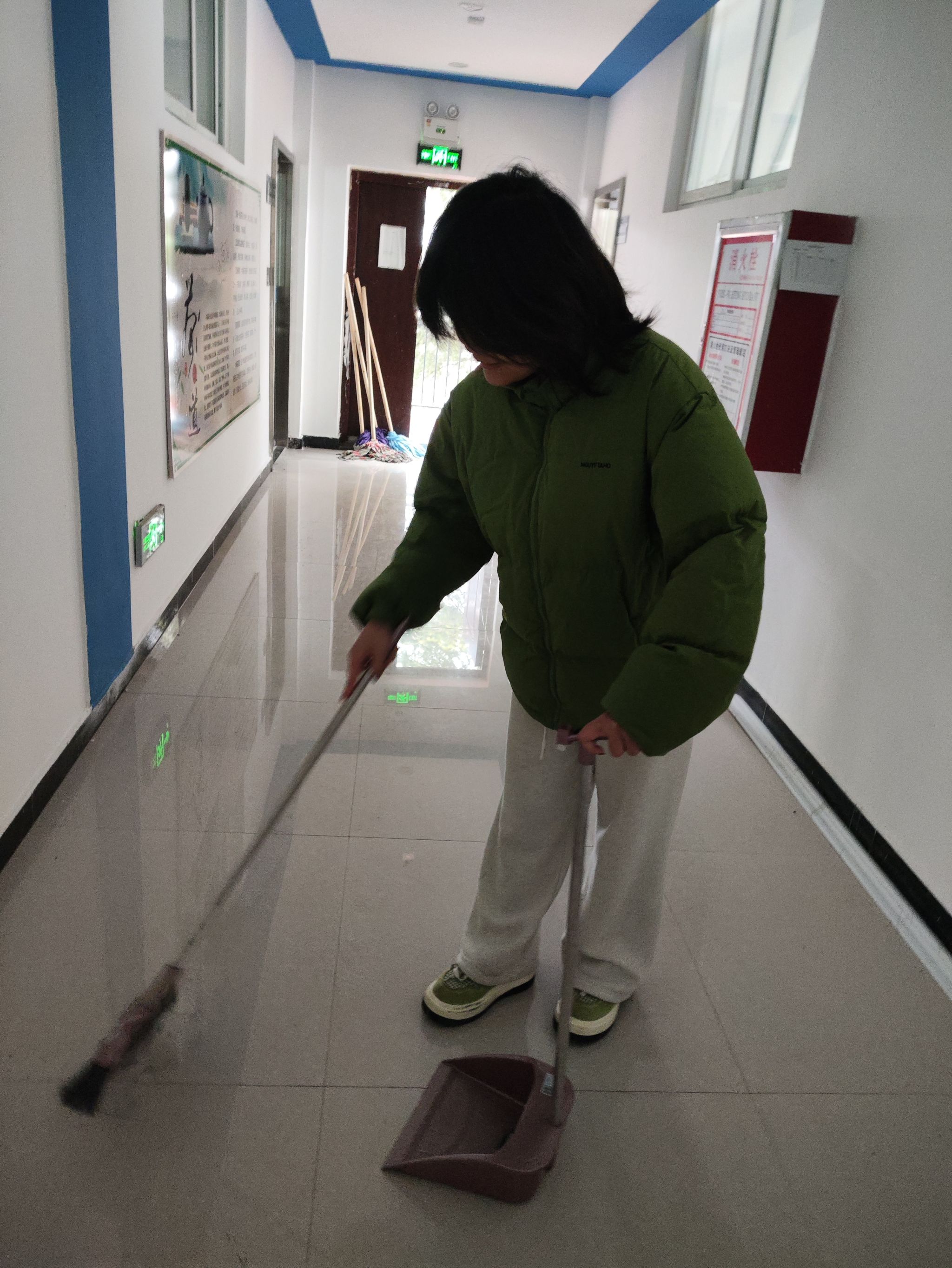 下午三点,志愿者们一同前往了嘉量楼和欧式教学楼,双手紧握扫帚,从台阶的最上面一级开始,一下一下把垃圾和灰尘聚成一小堆,将垃圾扫进簸箕里。遇到扫帚难以清理的污渍,志愿者便蹲下身子,用小铲子一点点铲除,将走廊拖的干干净净。经过大家的不懈努力,嘉量楼和欧式教学楼焕然一新。