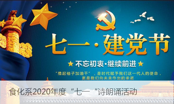 为庆祝中国共产党成立99周年,深入贯彻落实党的十九大和十九届二中、三中、四中全会精神和习近平总书记系列讲话精神,促进精神文明建设,结合当下的抗疫保教,抗疫促学形式,食品与化工系党总支决定举行迎“七一”线上红色诗歌朗诵比赛。
