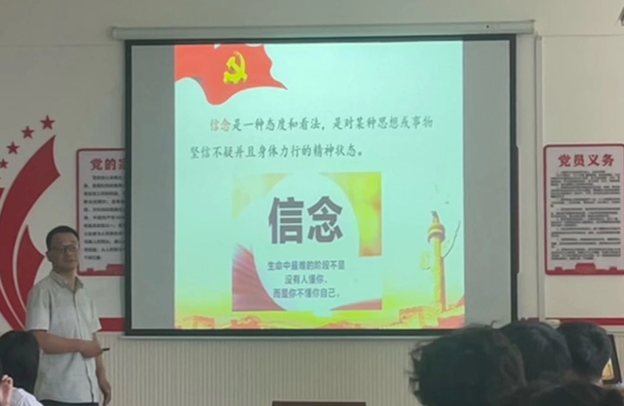 学生党支部书记刘书红在培训班上详细讲解了入党程序,勉励全体学员要高度重视入党积极分子培训,充分认识到入党积极分子培训是发展党员的必经阶段,是端正入党动机、提高思想觉悟的需要,也是确保党员发展质量的需要。她要求大家务必在日常学习生活中加强党性锻炼,努力做到思想上、行动上入党,时时处处以一名共产党员的标准来要求自己,使自己成为德智体美劳全面发展的榜样。