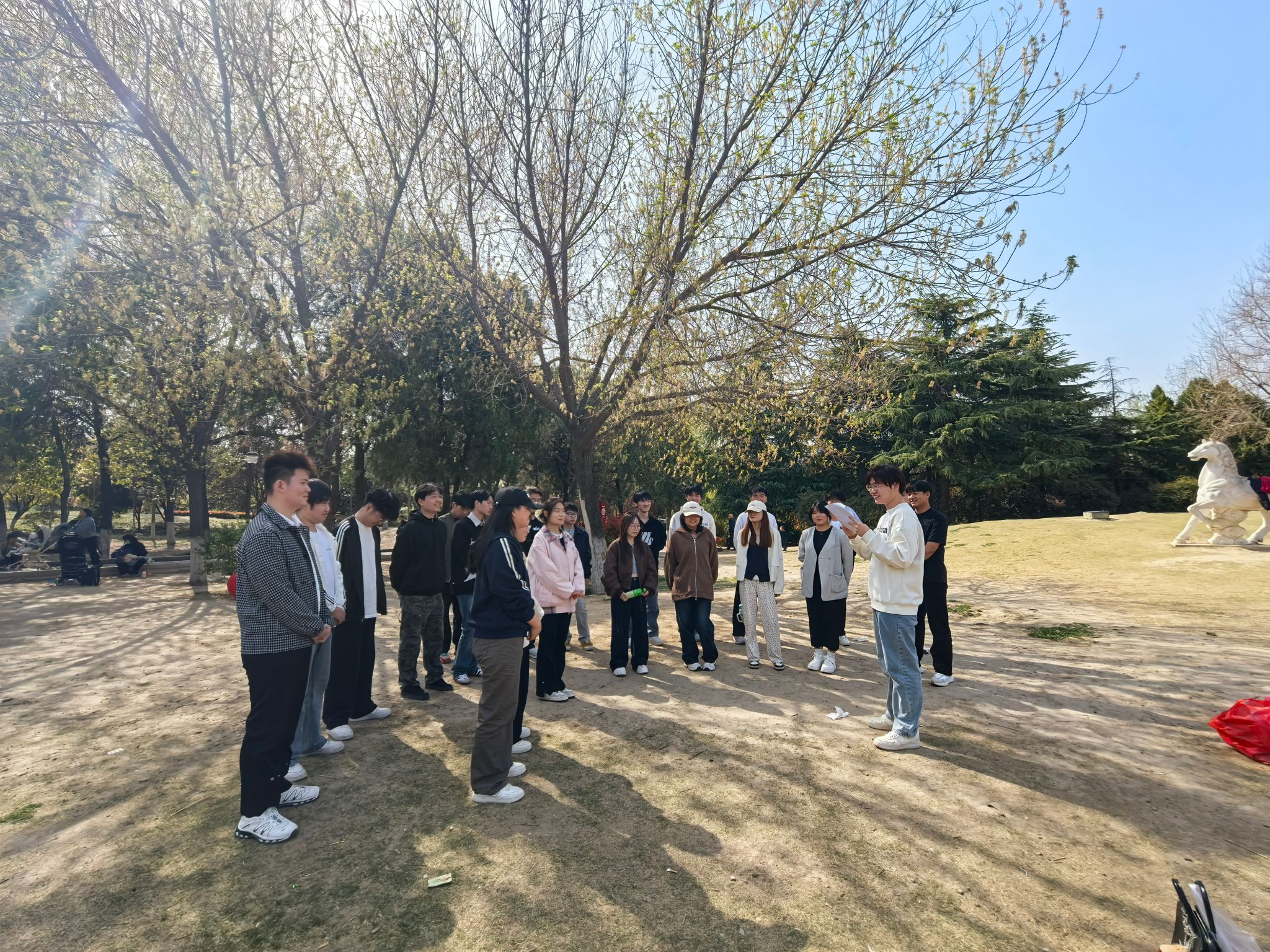 下午两点,学员们与老师一同徒步前往河滨公园,在前行的路上感受着柔和的春风与盎然的绿意。到达公园后,师生们一起坐草坪上,进行诗词诵读、谈心聊天、互动游戏等丰富有趣的活动。在度过了充实又温馨的踏青时光后,大家进行公园清扫,以实际行动为公园美化环境。