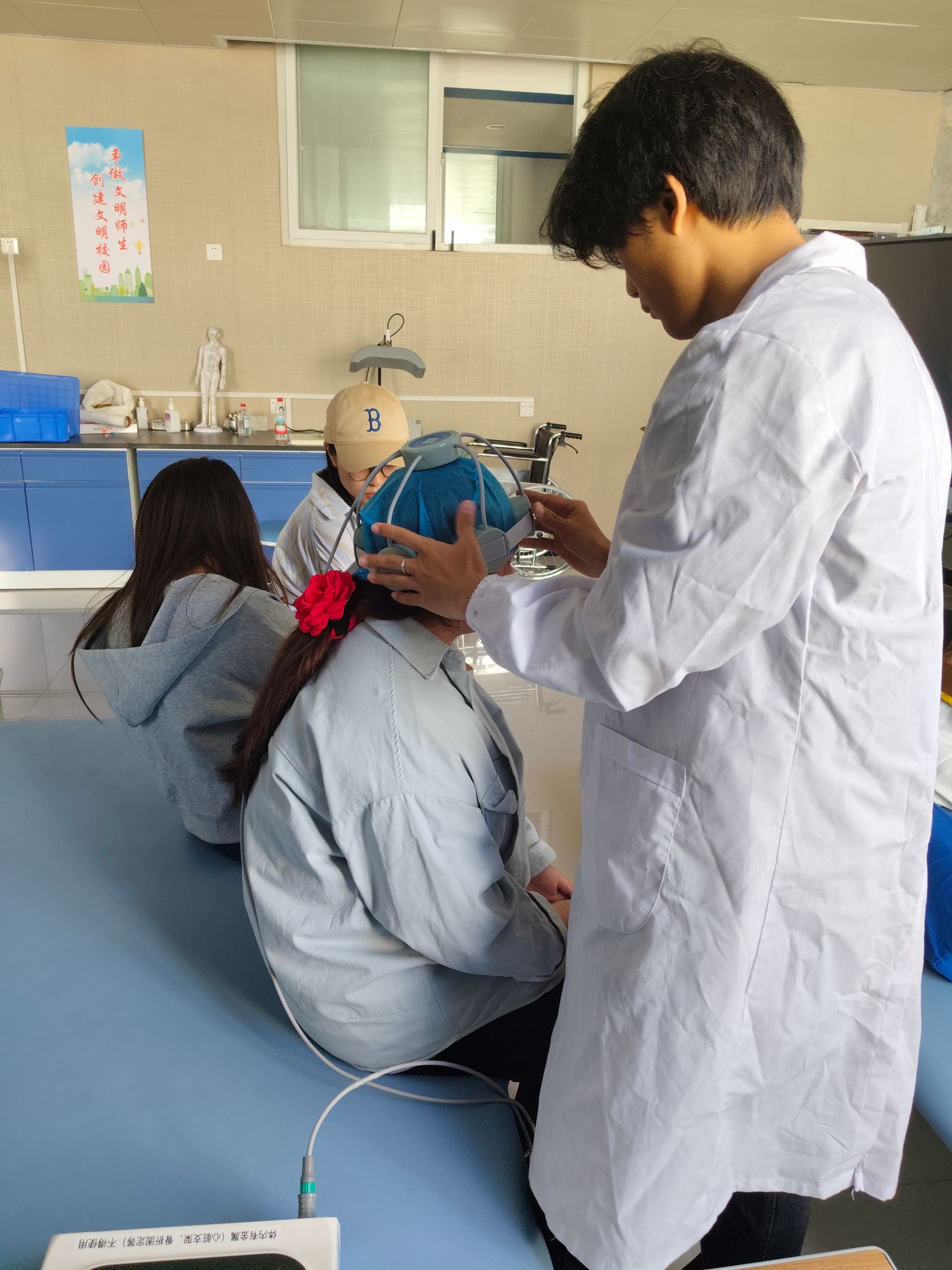 对已经出现失眠、抑郁、焦虑症状的同学,志愿服务团队提供了专业的康复理疗。使用经颅磁,合理改善同学们的焦虑抑郁的情绪。同时,帮助同学们调整睡眠节律,提高睡眠质量。