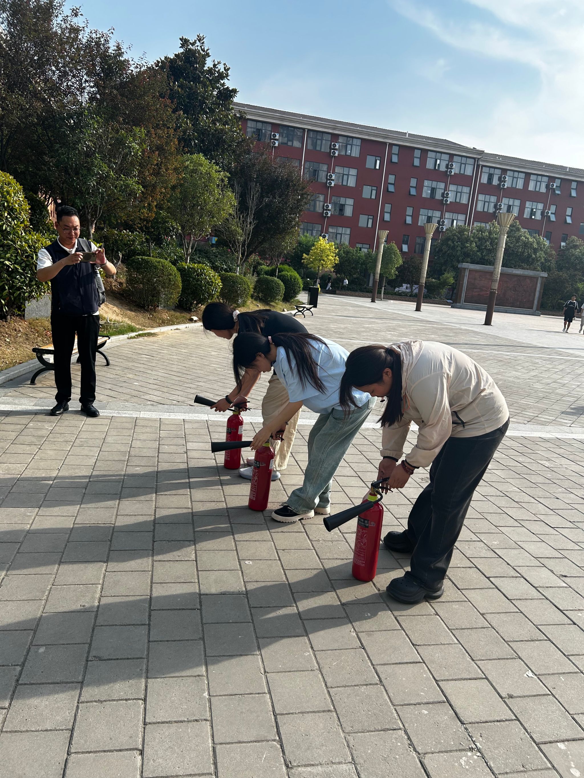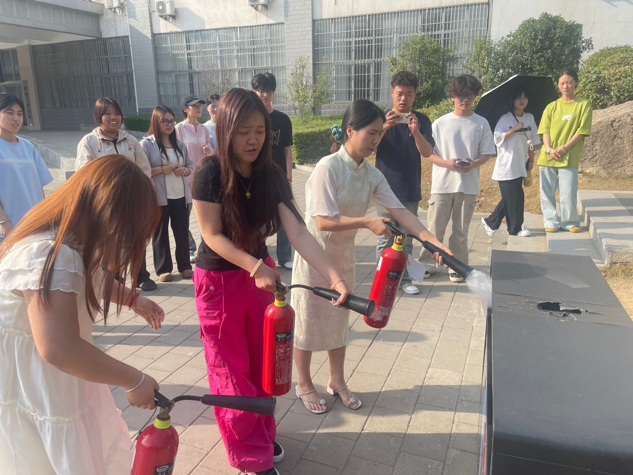 理论培训结束后,师生们移步至嘉量楼下,开展火灾逃生、紧急疏散和灭火器使用演练。演练过程中,大家严格按照预定方案,迅速而有序地完成撤离动作。董露野老师在现场亲自指导,向师生们传授正确使用灭火器的方法和技巧。在老师的指导下,师生们亲自上手操作,切实掌握了灭火器的使用要领。