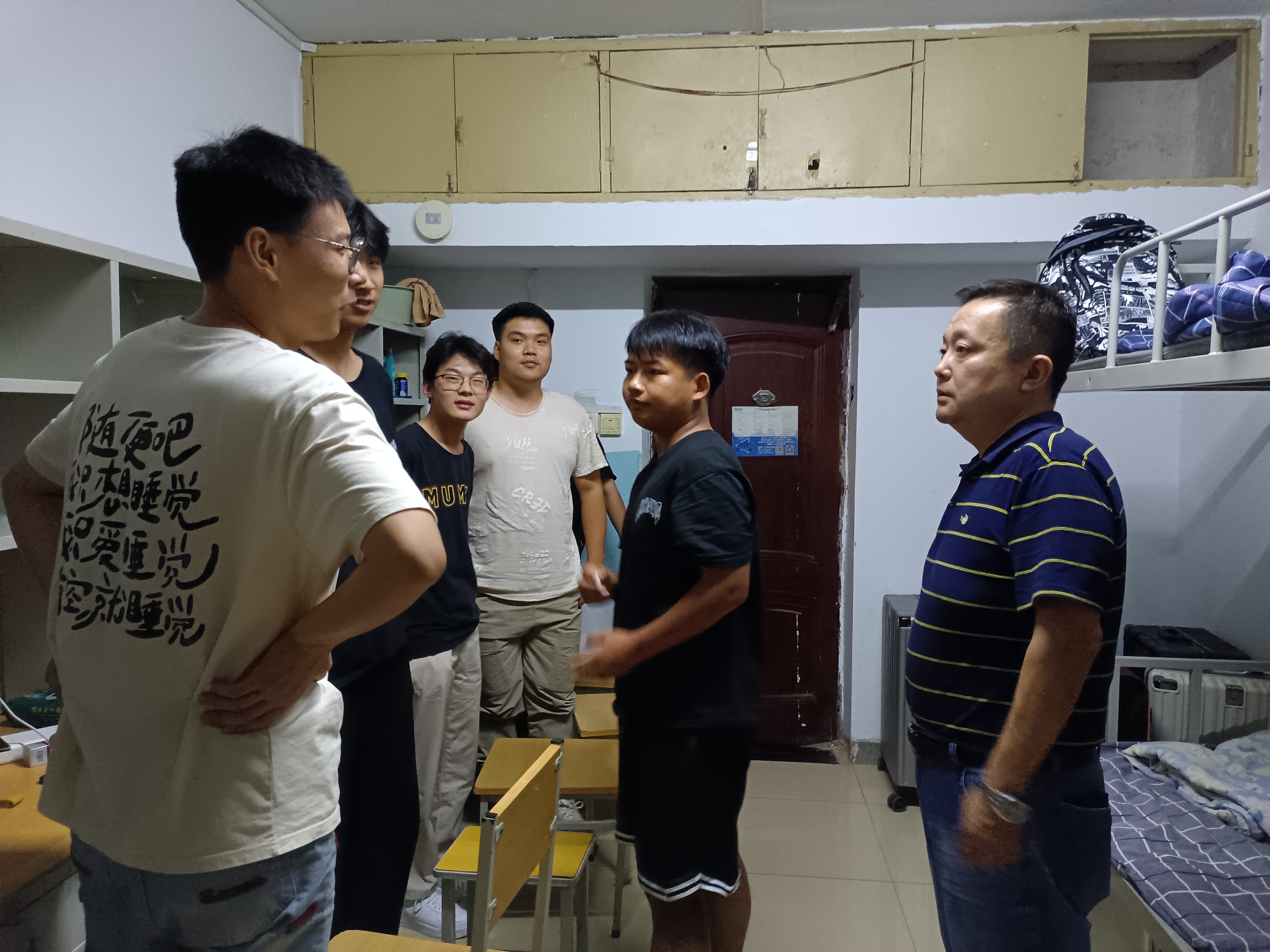 9月10日晚,食品与化工学院院长张虽栓、党总支书记胡洁涛率领全体新生辅导员老师深入宿舍一线看望新生。