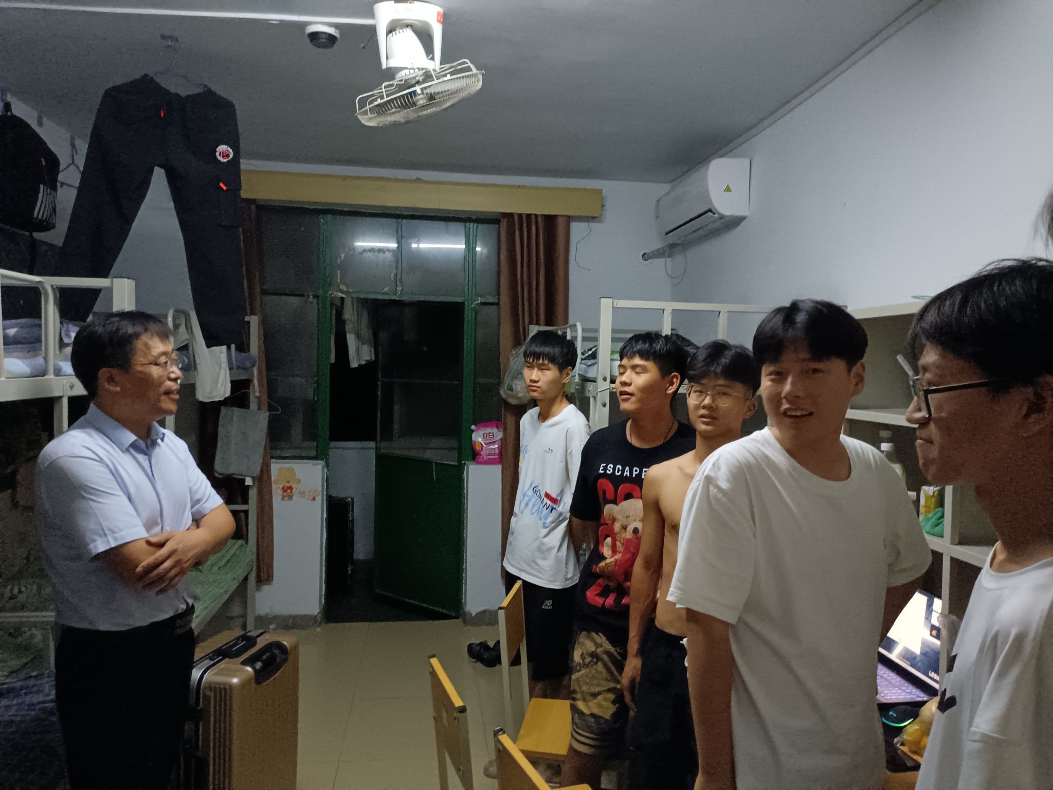 此次深入宿舍的过程中,院长张虽栓亲切询问广大新生的生活状态,对学院的各项安排是否满意,食堂的饭菜是否吃的习惯,并嘱咐同学们注意个人休息和身体状态,以饱满的精神面貌迎接明天的军训。