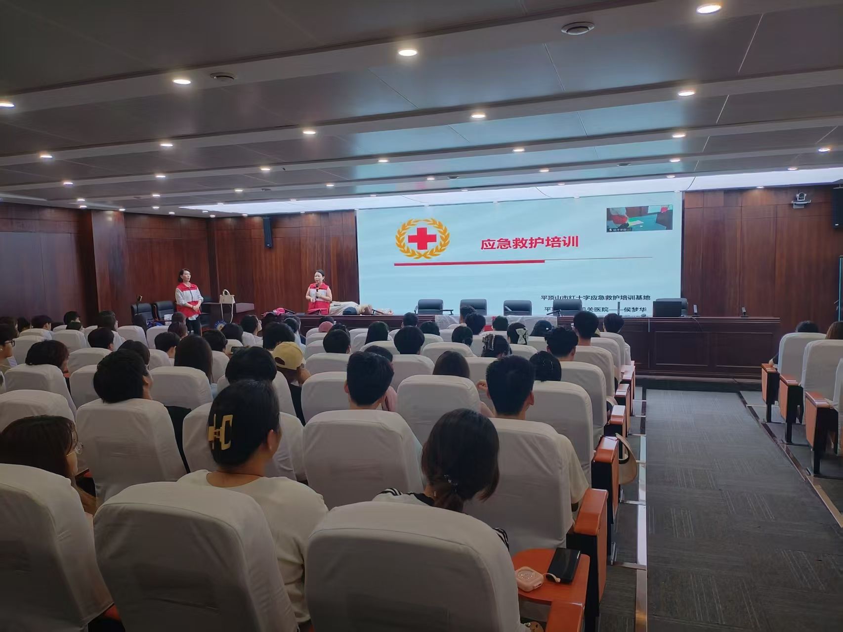 为提升康复工程技术等专业学生应对突发意外伤害的应急处置能力,筑牢校园生命安全防线,6月6日,食品与化工学院联合平顶山市红十字应急救护培训志愿服务队及培训基地,在致知楼4201共同举办了一场生动而深刻的应急救护技能专题培训。一百二十多名师生共同参与,学习守护生命的“黄金四分钟”法则。