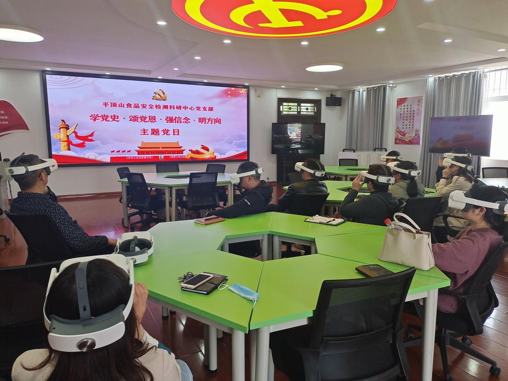 4月27日下午,平顶山食品安全检测科研中心党支部全体人员到思政教育虚拟仿真教学中心开展“学党史、颂党恩、强信念、明方向”主题党日活动。