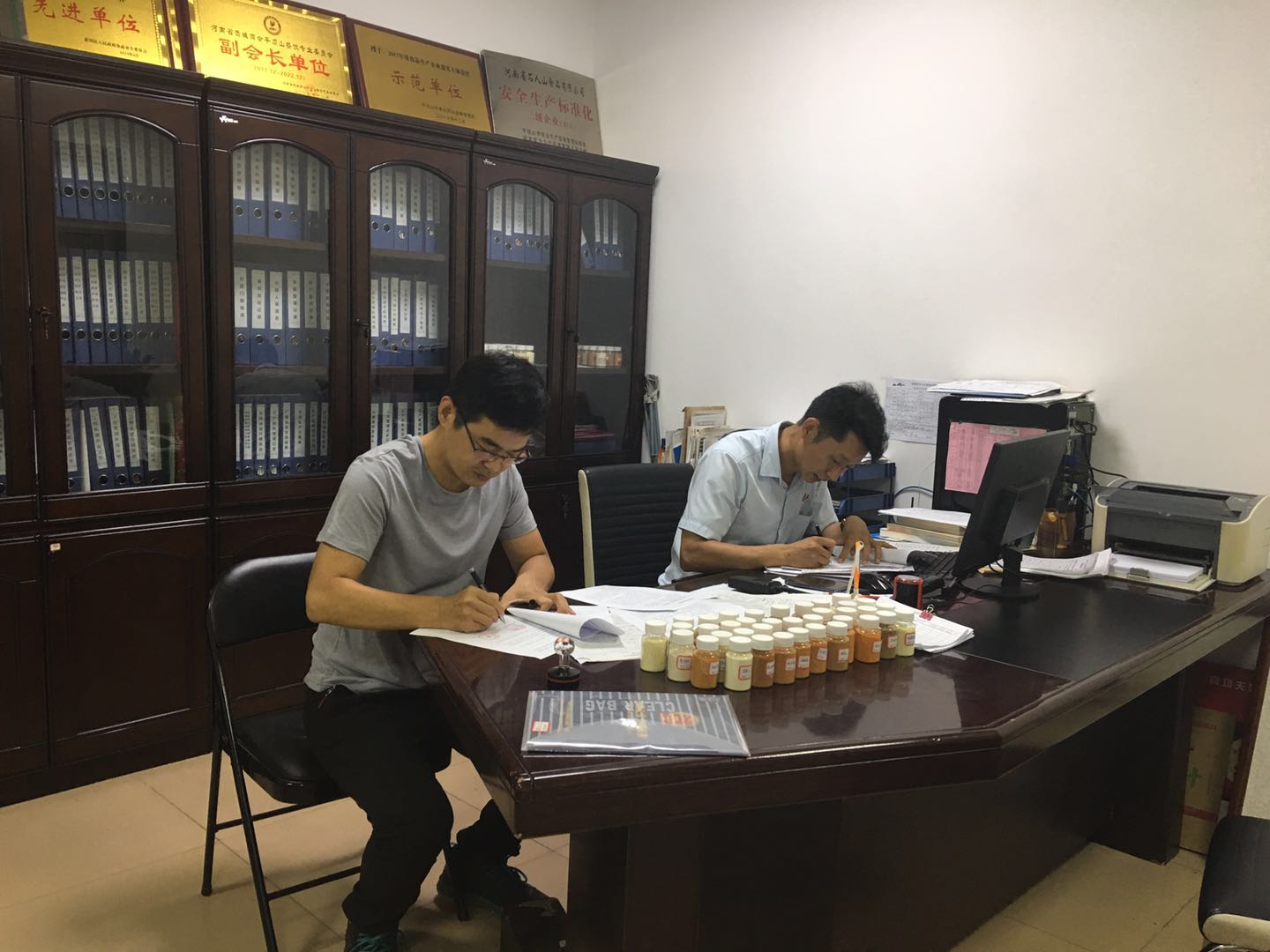2019年6月24日下午食检中心马振兴、张朝飞、孟书燕一行3人,到河南省石人山食品有限公司洽谈技术合作事宜。