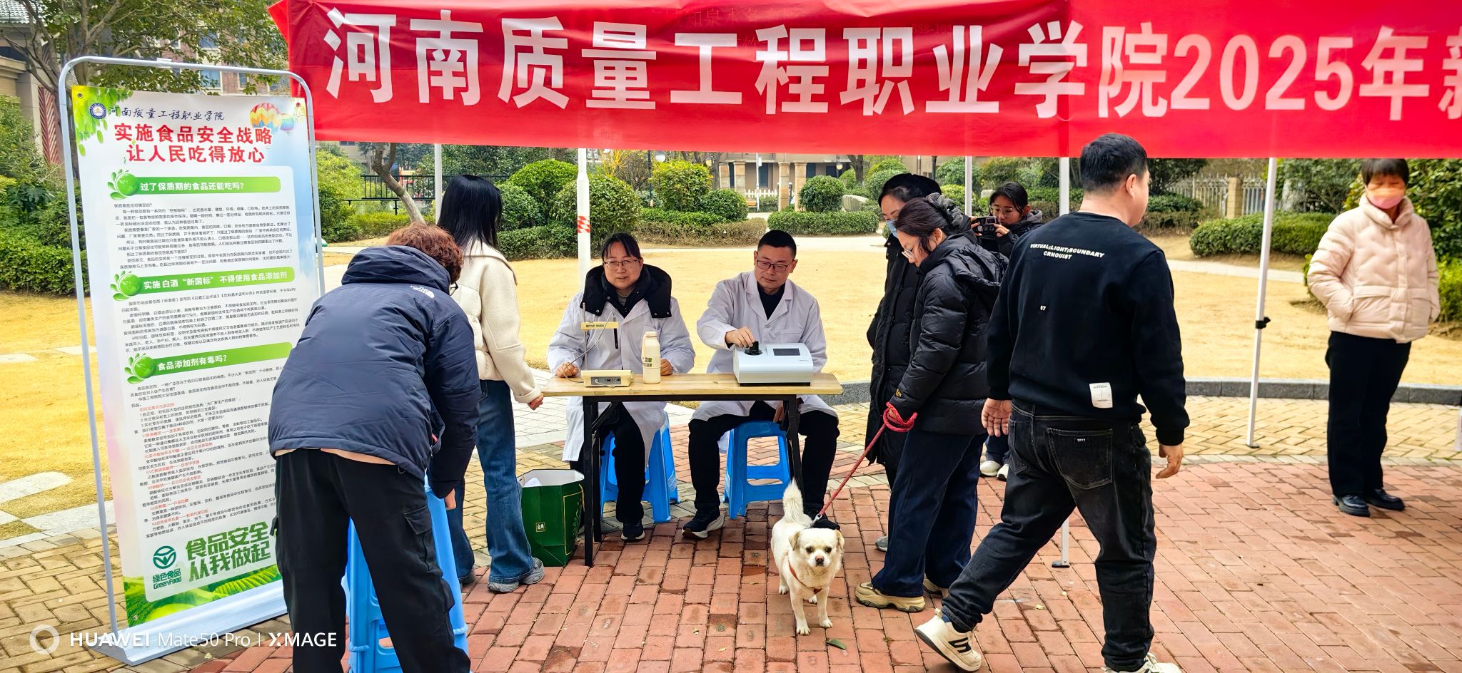为弘扬新时代雷锋精神,深化文明实践服务,2025年3月5日上午,平顶山食品安全检测科研中心联合学校宣传部、校医院、食品与化工学院,组织专业技术人员及志愿者走进碧桂园社区,开展食品安全知识普及、水质检测服务等系列志愿活动,以实际行动践行"奉献、友爱、互助、进步"的志愿服务精神。
