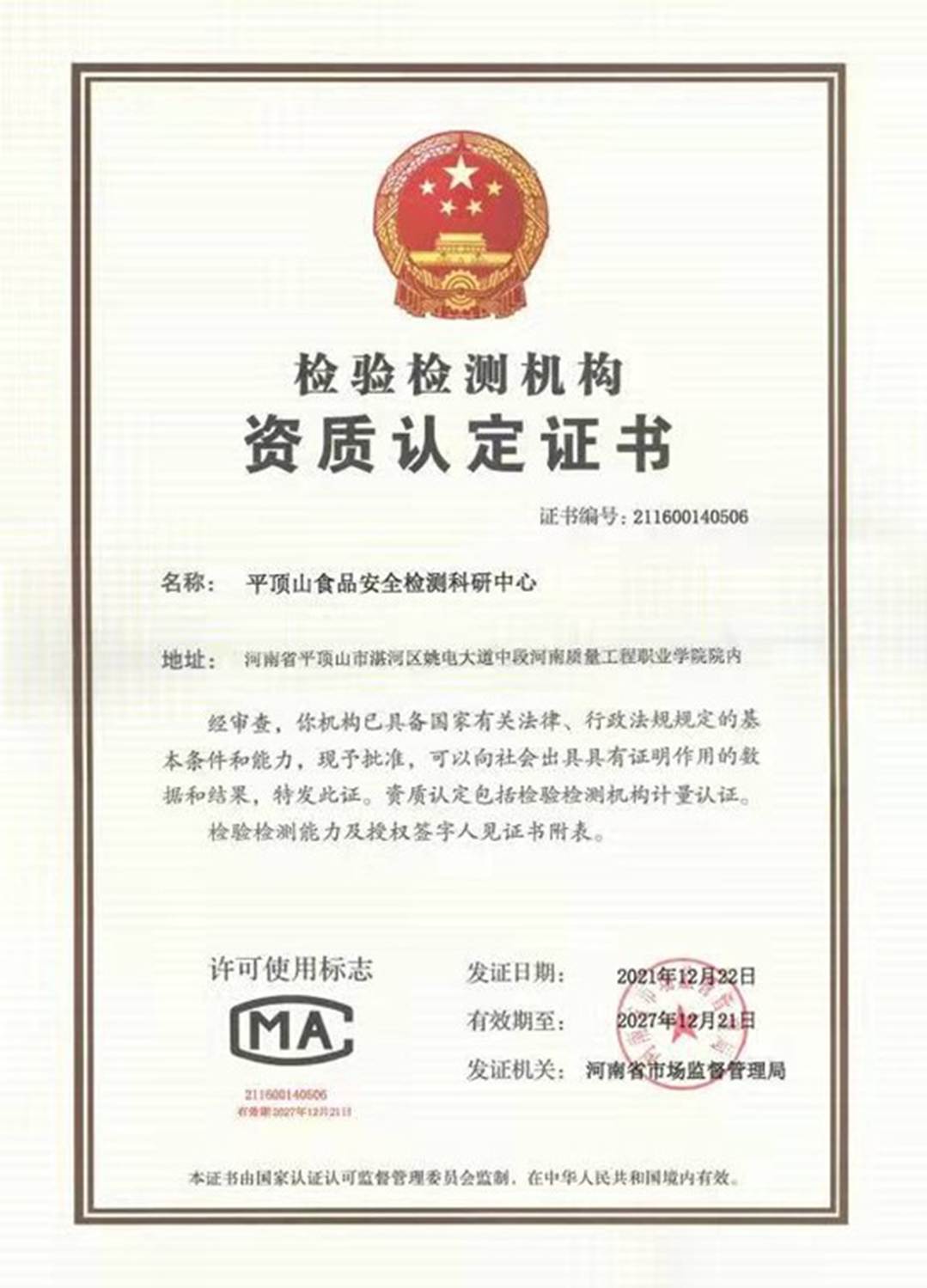 平顶山食品安全检测科研中心(简称“中心”)是经中共平顶山市委机构编制委员会文件批复(平编[2019]58号)于201911月正式成立。201912月获批平顶山市食品安全检测工程技术研究中心202112月取得检验检测机构CMA资质认证证书202210月获批平顶山市食品安全检测重点实验室