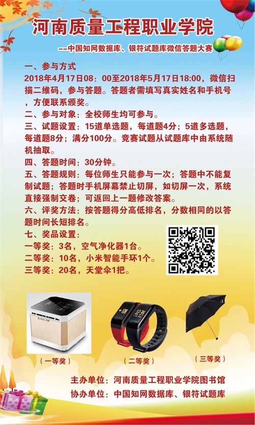 2、 CNKI中国知网、银符试题库微信答题大赛 (大赛题库见附件)