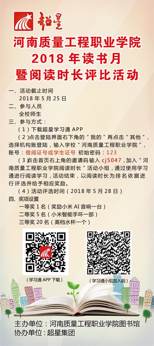 1、河南质量职量工程职业学院读书节阅读时长大赛
