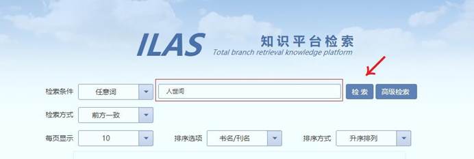 2、选择“检索条件”后,在检索框内输入需要检索的书目名称,例如:输入“人世间”, 点击“检索”按钮(注意:区分英文字母大小写和标点符号,如 iOS、Java、PHP、简·爱等);