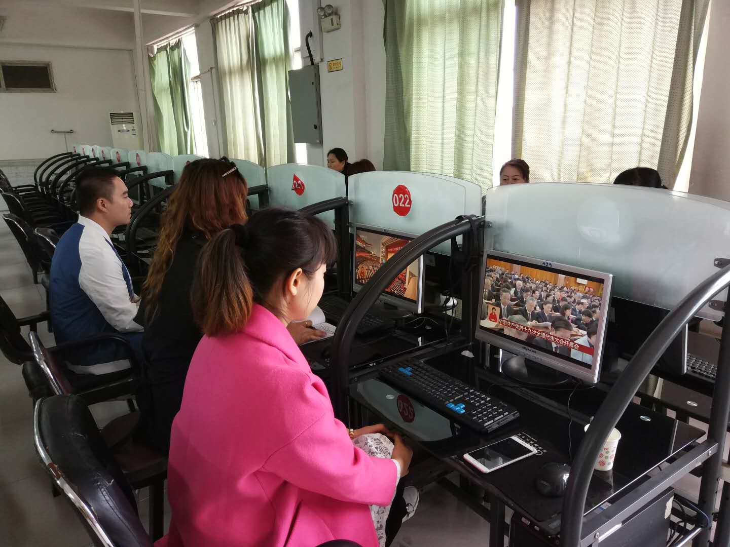 10月18日上午,按照学院的统一部署要求,图书馆党支部认真组织党员职工收看“十九大”开幕式直播盛况。上午9时整,图书馆党支部党员实到10人,请假5人,集中在图书馆六楼电子阅览室收看了“十九大”开幕式,其他职工同志也在办公室通过电视、网络等途径收看收听了开幕式,全体党员同志都沉浸在喜迎“十九大”胜利召开的浓厚氛围里,整整3个半小时的时间里大家都聚精会神听报告,全神贯注做笔记,又激动又自豪,表现出了对中国共产党的无限热爱和无限期待。