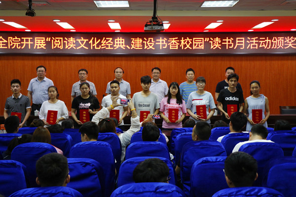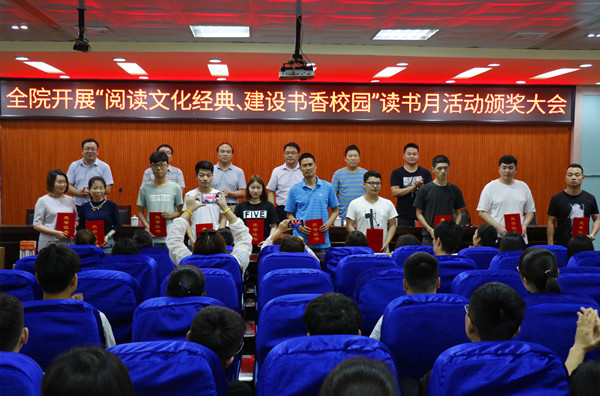 5月31日下午,由学院图书馆牵头,党委宣传部、教务处、学生处、团委、各系部共同举办的2018“阅读文化经典,建设书香校园”主题系列活动闭幕式暨颁奖大会在致知楼第二学术报告厅举行。院领导葛长龙、姜葆亮,有关部门负责同志及万方数据库、中国知网数据库、超星数据库负责人,部分师生代表参加了大会。