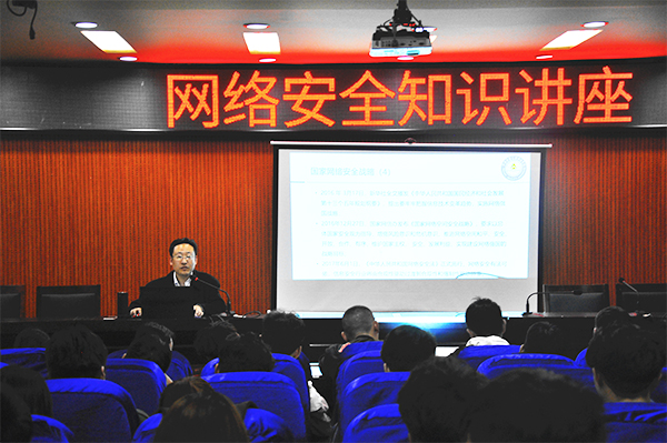牛军涛介绍了当前国际国内网络安全形势、中央及有关部门关于网络安全的方针政策,解读了《网络安全法》等有关法律法规,讲解了大量实用的网络安全知识和大学生安全文明用网的注意事项。深入浅出、生动有趣的讲解使同学们不时发出会心的笑声。