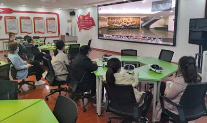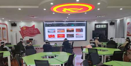 4月12日上午,现代教育技术中心党支部全体党员怀着激动的心情,走进学院思政教育虚拟仿真教学中心开展主题党日活动,利用VR红色资源学习党史,领悟我们党的初心使命。