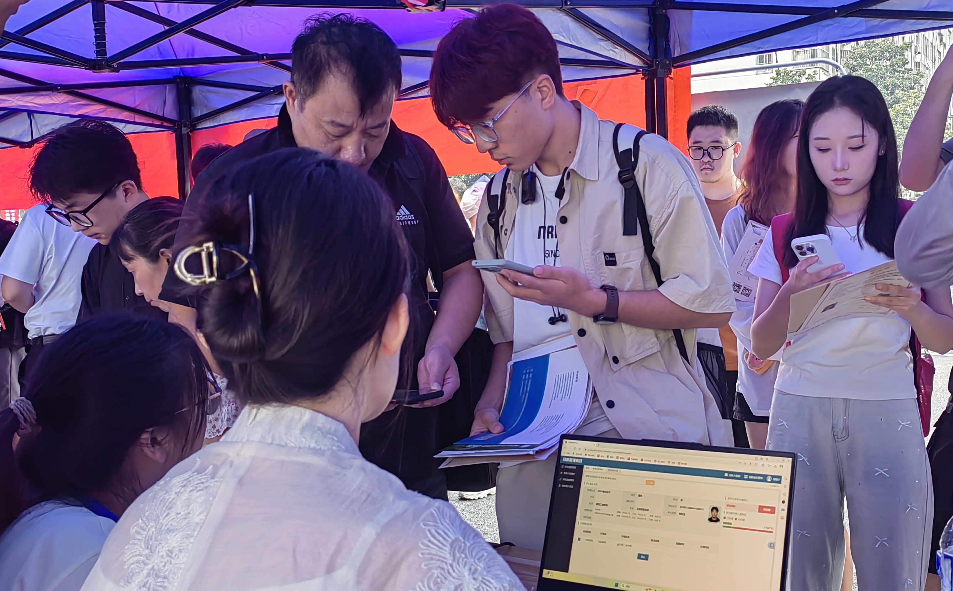 迎新首日,现教中心全体成员早早来到报到现场,在现教中心主任王延中的带领下,深入到各院系报到点,耐心解答师生疑问,及时处理网络运行、迎新系统运行等相关问题,为迎新工作的顺利进行提供了坚实的技术保障,确保我院迎新工作高效、有序地进行。