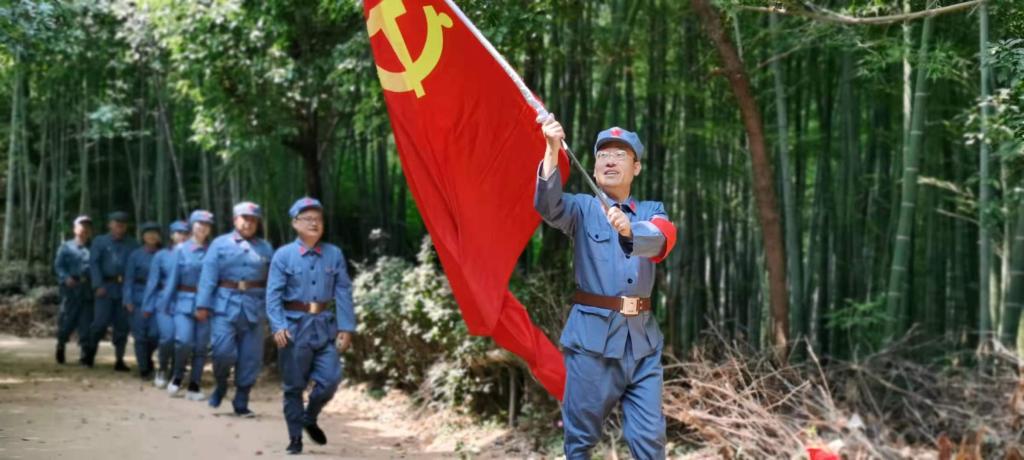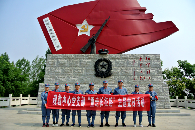 6月11日上午,现教中心党支部全体党员身穿红军服,头戴红军帽,佩戴党徽,高举党旗,一同前往叶县辛庄镇桐树庄红九军诞生地,开展“重走长征路,重温红色梦”主题党日活动,传承弘扬长征精神。