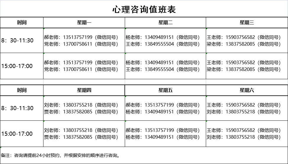 2. 正式开始咨询后如不能如期来访,需提前一个工作日下午5点前与咨询师预约取消