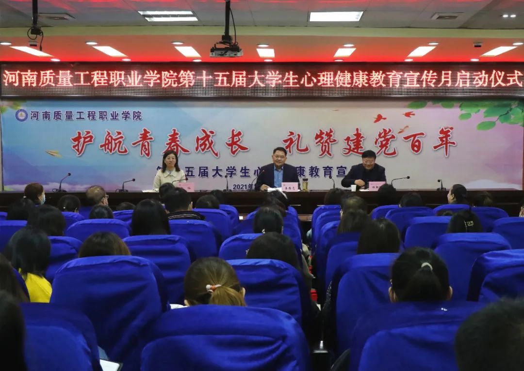 2021年11月4日上午,我院第十五届大学生心理健康教育宣传月启动仪式在第二学术报告厅隆重举行。院党委副书记姜葆亮主持启动仪式,院党委委员、副院长田新现出席并讲话,心理中心主任郝梅宣读了活动方案,各二级学院(部)书记、副书记、学生管理科科长、2021级专兼职辅导员、班主任、大学生心理协会成员、心理中心全体教师参加了会议。