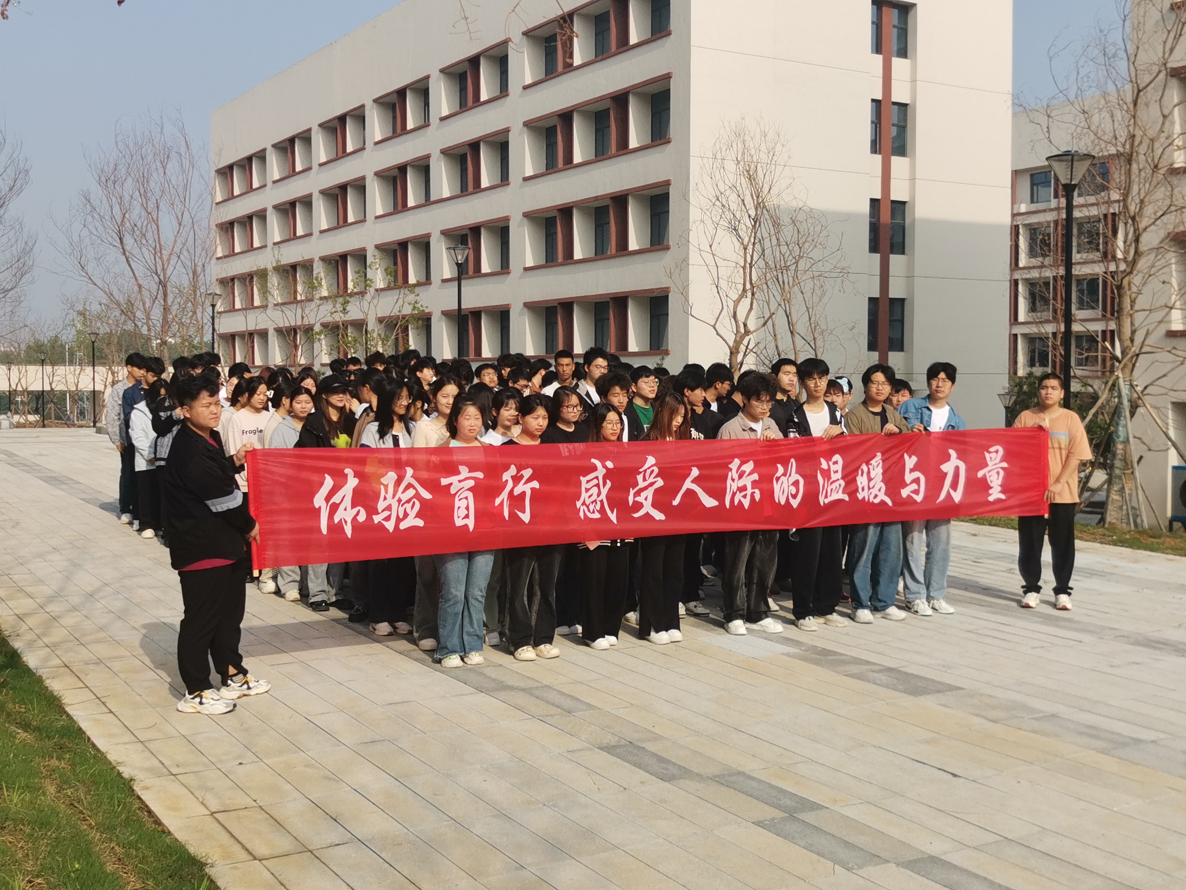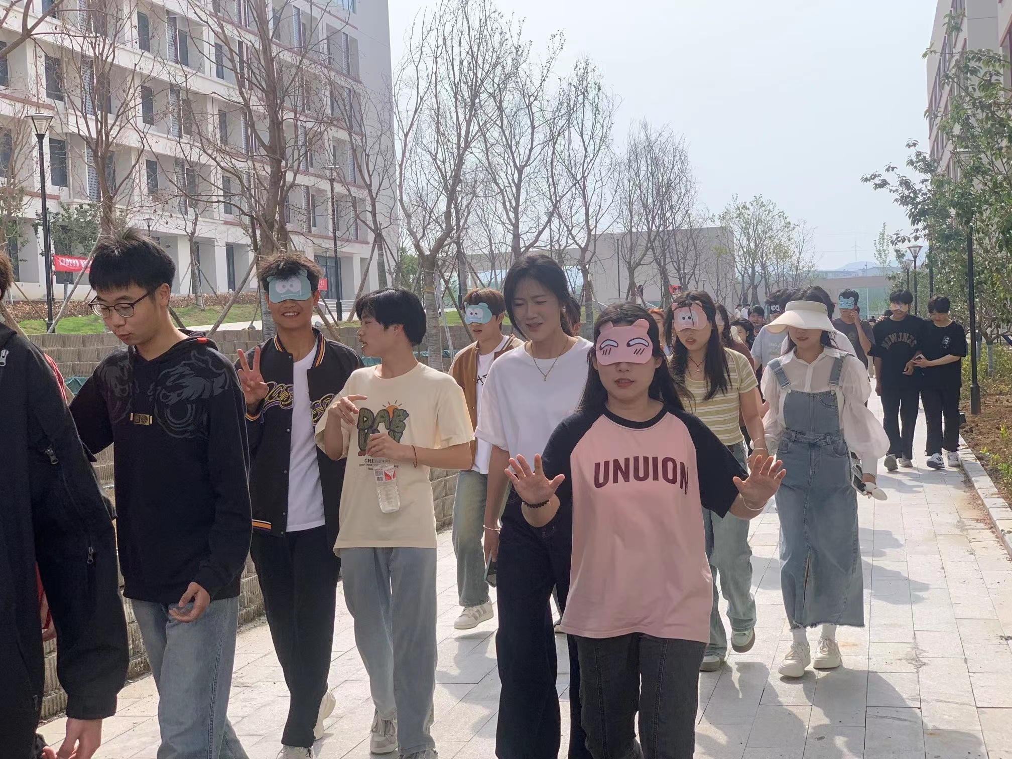 23级移动商务1班张佳媛:“通过这次盲行活动,真切体会到看不见的世界是怎样的。戴上眼罩那一刻真的很紧张,不过在伙伴的方向指挥和我对她的信任下,顺利走到了终点,真正感受到了信任带给人际的温暖与力量。”