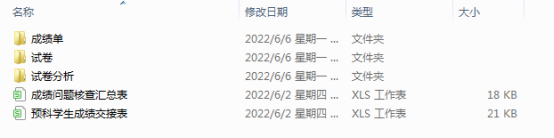 三级目录:试卷,试卷分析(表格命名要标上专业班级),成绩单(表格命名要标上专业班级),成绩问题核查表。