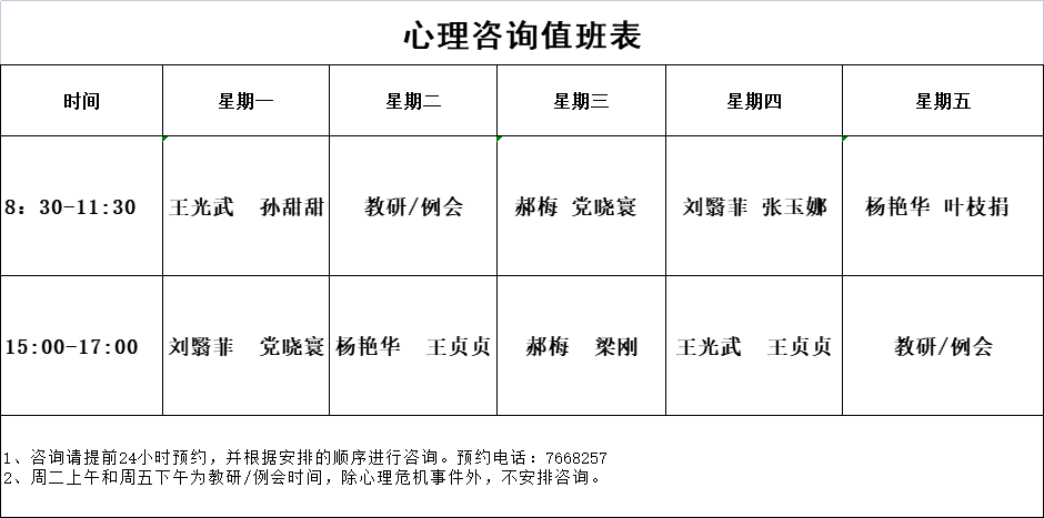 2023年春心理咨询值班表
