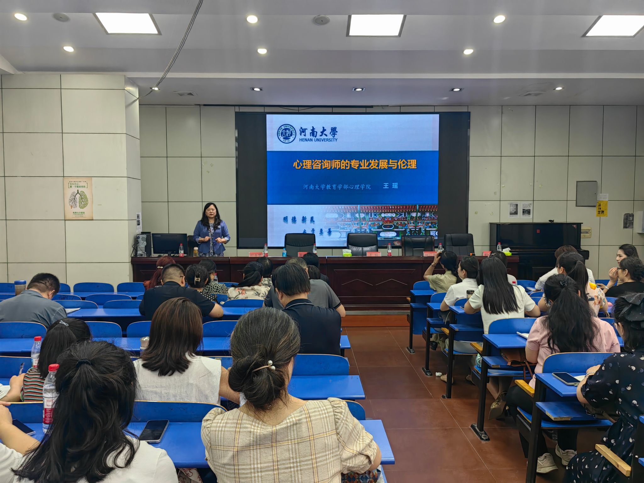 6月8日上午,大学生心理健康教育中心专兼职教师参加了河南大学教育学部心理学院王瑶教授主讲的《心理咨询师的专业发展与伦理》专题讲座,讲座主要由在平高校心理健康教育工作人员参加,在平顶山职业技术学院报告厅举办。