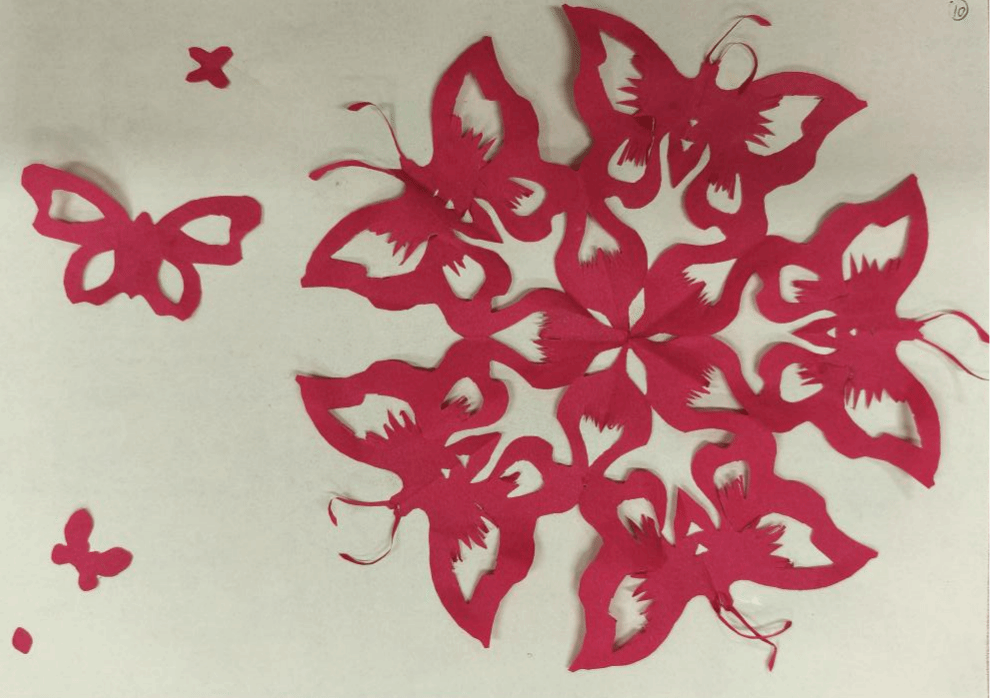 同学们在创作中,根据自己的心情选择不同颜色的纸张,认真刻画剪裁样式,再使用剪刀小心完成。在这过程中,各位老师也受到感染,投入到了剪纸制作中。