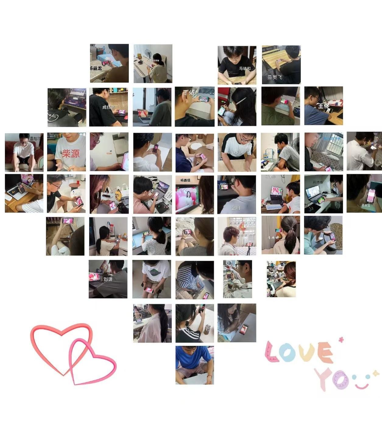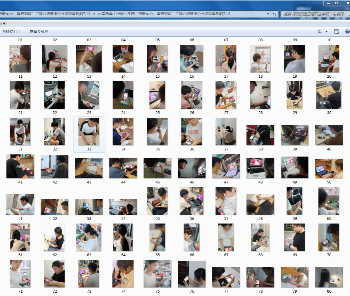 各个院部学生分散观看照片