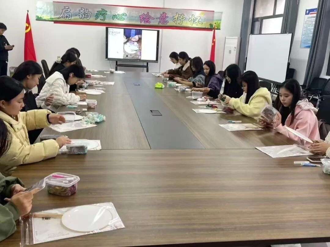为营造关爱自我、和谐向上的校园文化氛围,培养学生积极向上的心理健康状态,根据《关于举办2025年大学生心理健康教育宣传月活动的通知》(豫质院办【2025】12号)文件精神,信息工程学院于11月6日在舞钢校区举办了以“扇韵疗心,绘意抒怀”为主题的团扇DIY制作活动。活动通过团扇制作与心灵分享,为大学生心理健康注入温暖力量。